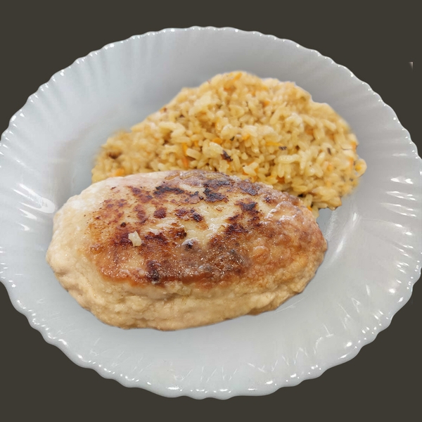 Выгодное комбо без напитка. Фирменная котлета из постного (нежирного) карбонада и жареный рис с овощами 350 г.